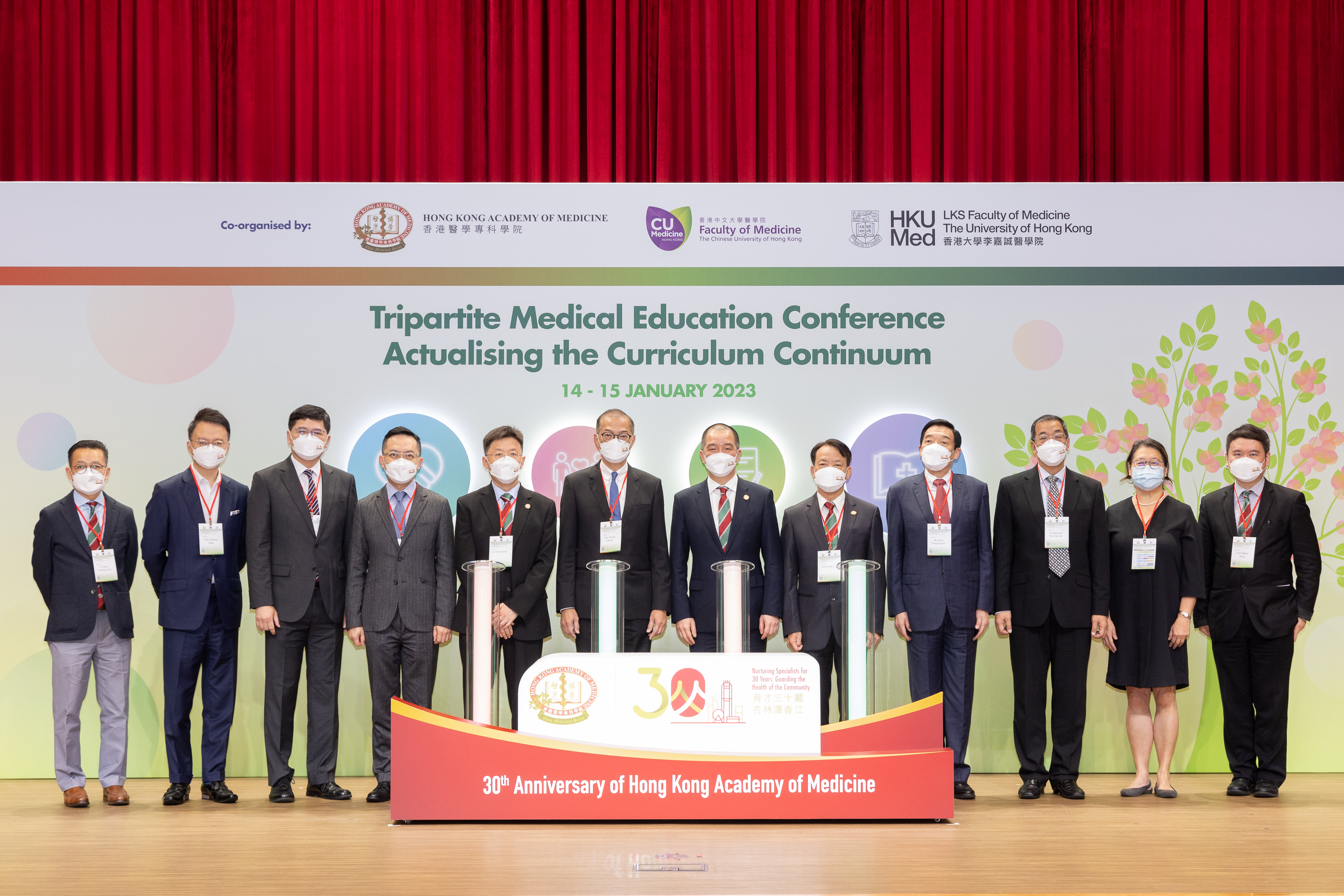 On 14-15 January 2023, the Academy expanded its focus on highlighting specialist training in its annual Medical Education Conference by joining hands with the Faculty of Medicine, The Chinese University of Hong Kong (CU Medicine) and the LKS Faculty of Medicine, The University of Hong Kong (HKUMed) for organising a two-day Tripartite Medical Education Conference 2023. The conference brought together insights of the latest development of both undergraduate and postgraduate medical education around the main theme ‘Actualising the Curriculum Continuum’. The conference was graced by government officials, counterparts, as well as local and overseas speakers.